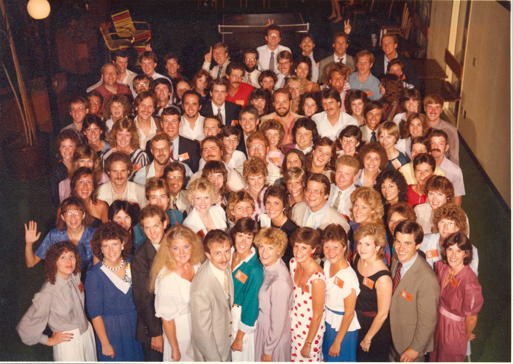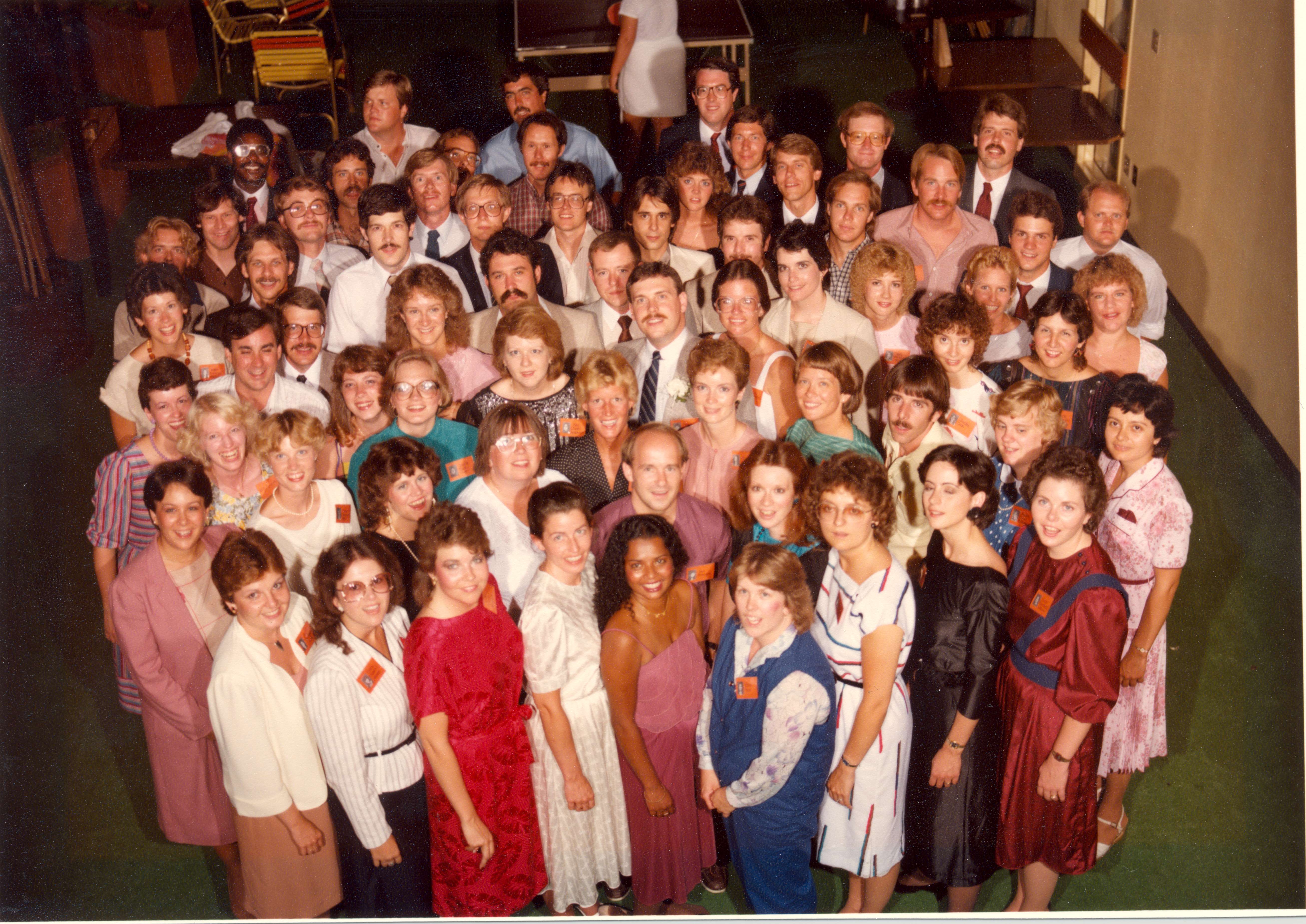 Ames High School 1974 AHS 10 Year Class Reunion Group Photo taken at Starlight Village Ames Iowa in 1984, what great photos !