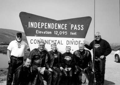 Ames' own Rubber Knife Gang (RKG), known for its love of fun and zest for seeing the sights, was at it again last summer. In August 2000, the RKG (pictured here) toured Colorado. Beginning in Deadwood, South Dakota the riders snaked their way through Colorado by way of Fort Collins, Canyon City, Glenwood Springs and Steamboat Springs. The gang sneaked back to the Black Hills by way of Cheyenne, WY a week later. Fueled by the beauty of the continental United States and a desire to spend their children's inheritance, the RKG constantly searches for somewhere to ride. June 2001 will find the RKG in the beautiful state of Tennessee visiting a Harley rider with Ames High ties. John McDonald, who attended AHS with the class of `65 but moved to Oregon before graduation, will play tour guide. Other members of the RKG have similar stories to John's. Lindsay Ellingson attended AHS with the class of `65 but graduated from Gilbert High. Gilbert High graduate Steve Romsey married Sharon Heggen Romsey `74. Unfortunately, a busy season at the family farm kept the Romseys from joining the fun on the August trip. Carol (Carmean) Houge `64 |